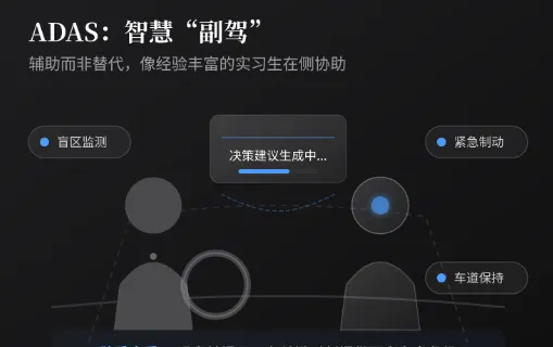 直接说:车上有ADAS,一个智能副驾。我在场,它在场,活儿搭着干。