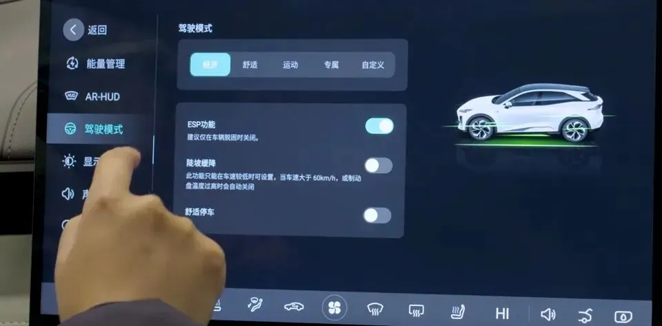 驾驶模式也统一:选择节能或经济模式,没有经济模式的统一标准模式;动能回收设为最强,不使用单踏板。这点必须给个大大的好评,起码规则清楚,不玩“我家模式更讨巧”。