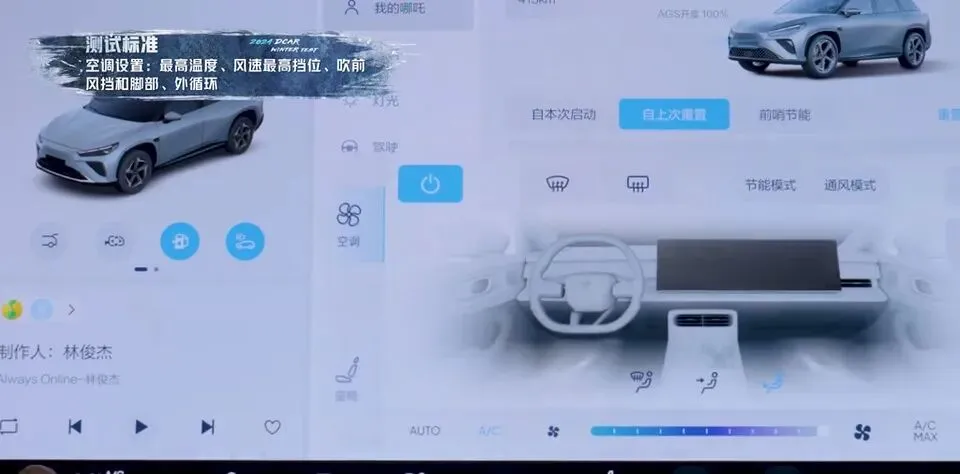 纯电测试出发时,空调更是直接上强度:空调设置为最高温度、最高风量,当面部温度达到22℃后,将空调调至24℃自动。冬天用车真实就是这样——你总不能冻着家人只为跑续航。