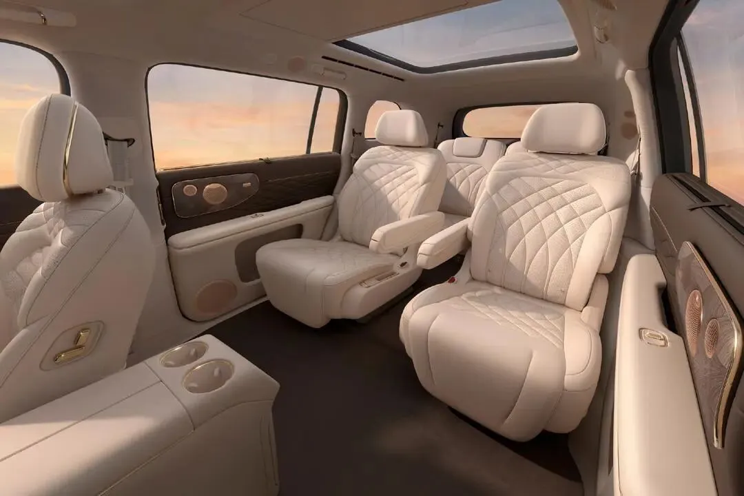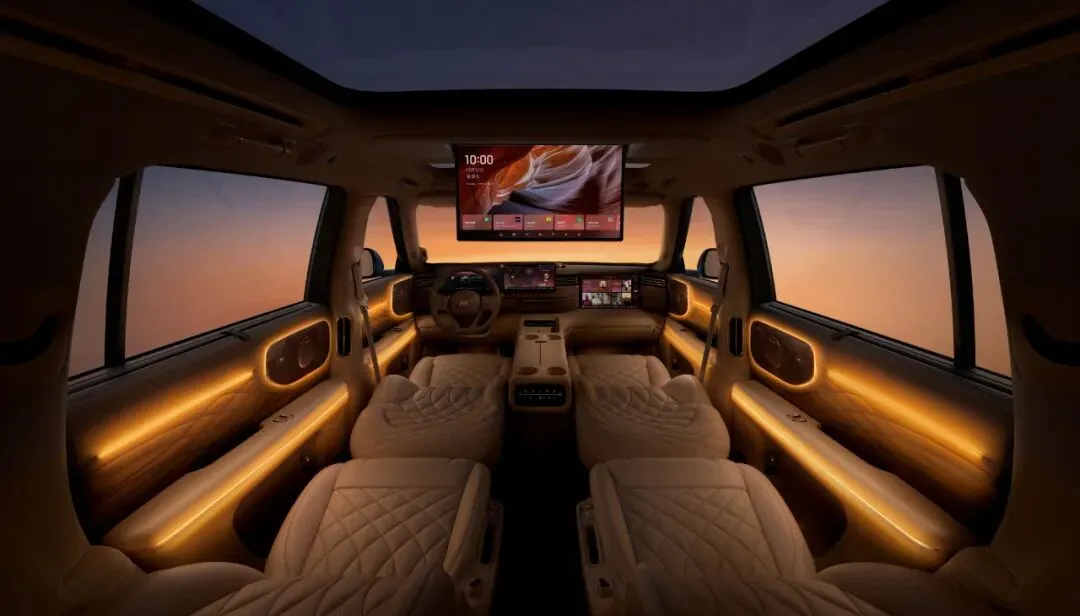 设计上,它用贯穿灯带+平直线条营造“科技感”,纯电版还保留了前备厢——实用性拉满。内饰虽然没公布,但“彩电冰箱大沙发”已经是基本操作:120度躺姿零重力座椅、车载制氧机、夹层隔音玻璃,甚至连座椅布局都给了5座/6座/7座选项,照顾到了多孩家庭、商务接待等不同场景。
