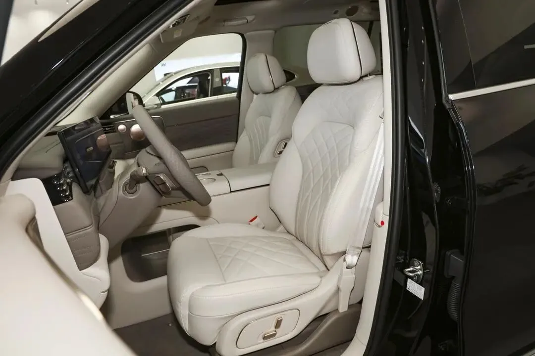 设计上,它用平直方正的线条堆出“稳重大气”:车头厚重感拉满,搭配大饼造型轮圈,一眼就能看出“旗舰”身份。内饰延续LS6的双联屏组合——27.1英寸中控屏+15.6英寸副驾娱乐屏,再加上第二排右侧的零重力座椅、车载冰箱和21.5英寸后排娱乐屏,把“座舱豪华感”直接拉满。