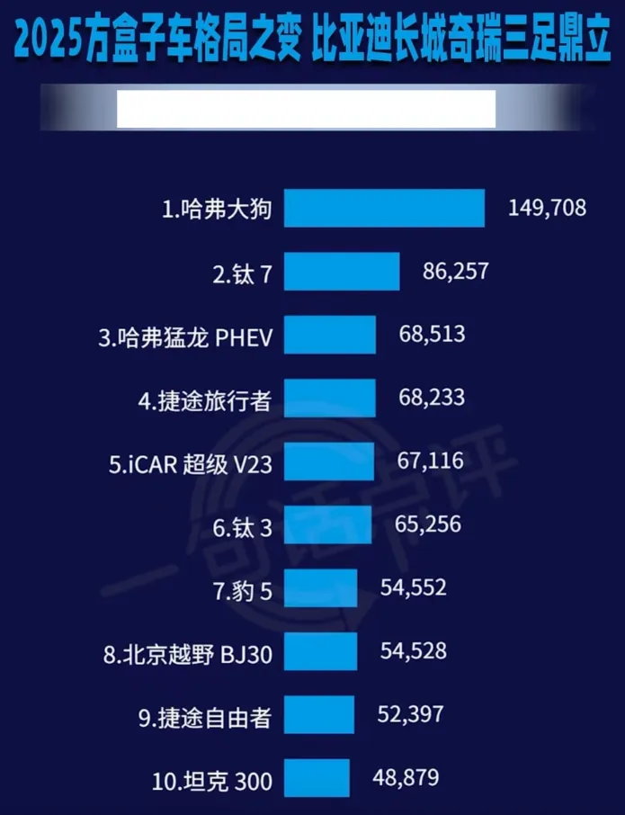 坦克系列加上哈弗大狗等产品矩阵,让长城长期稳居方盒子市场第一的宝座。