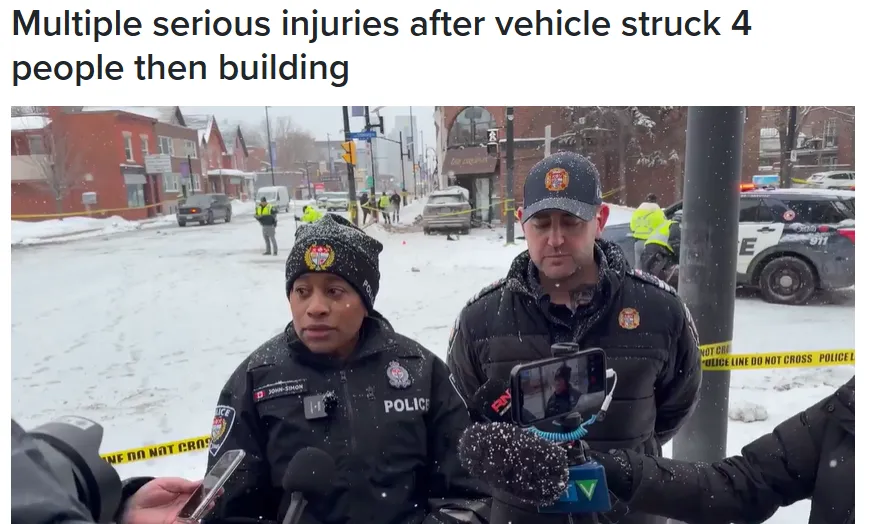 附近一家shawarma餐厅的员工Feras Jarmans做为目击者,他告诉加拿大通讯社记者,他正在餐厅里,突然听到巨响,然后他看见一辆SUV撞上建筑物的巨响,并看到SUV上的女司机明显受到惊吓后离开了车辆,倒在地上,开始哭泣!