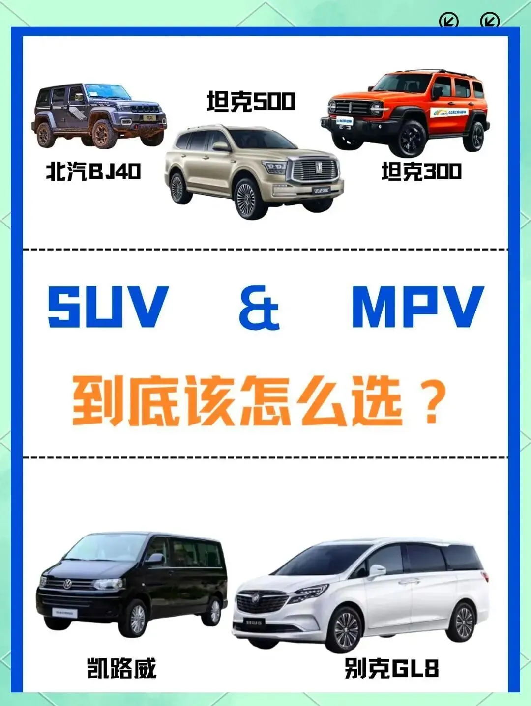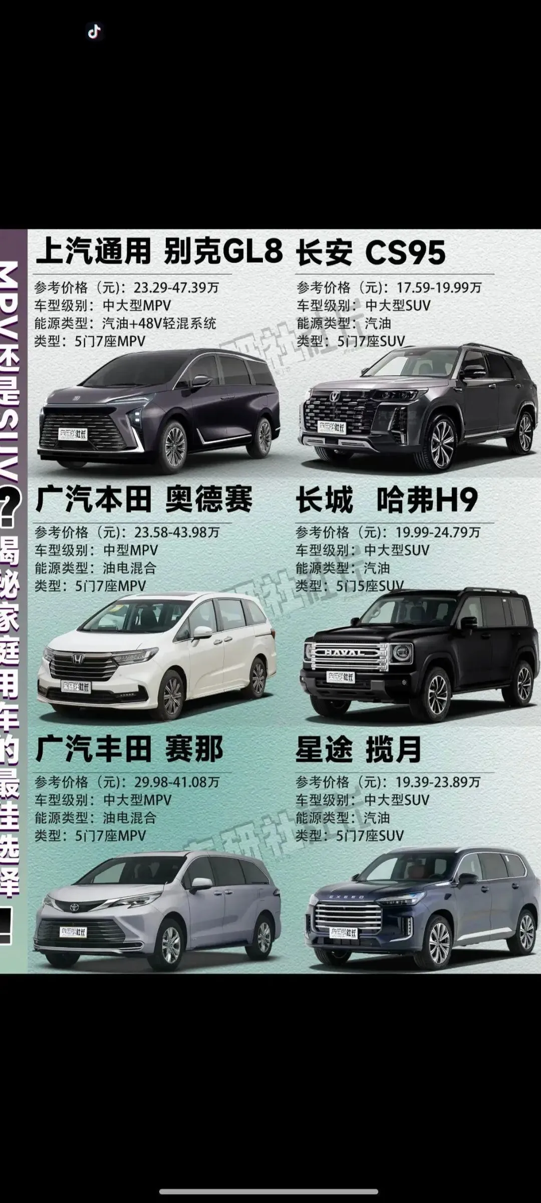 SUV让你成为驾驶的主角;MPV让你成为家的港湾。