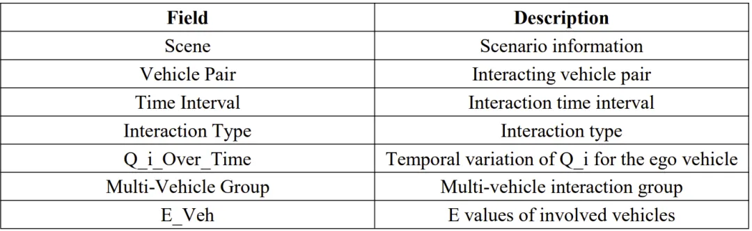团队将车车交互建模为连续时间序列过程,从交互强度(过程风险)和交互效率(决策质量)双维度,建立了基于随机过程的定量评估体系,为每个交互片段赋予物理属性标签,核心参数如表1所示。