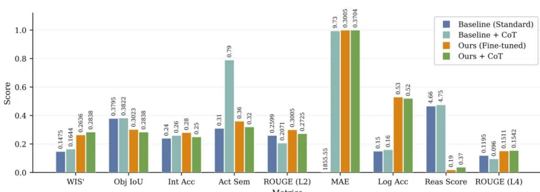 引入思维链(CoT)提示策略后重新评估模型,结果如表5、图10、图11所示: