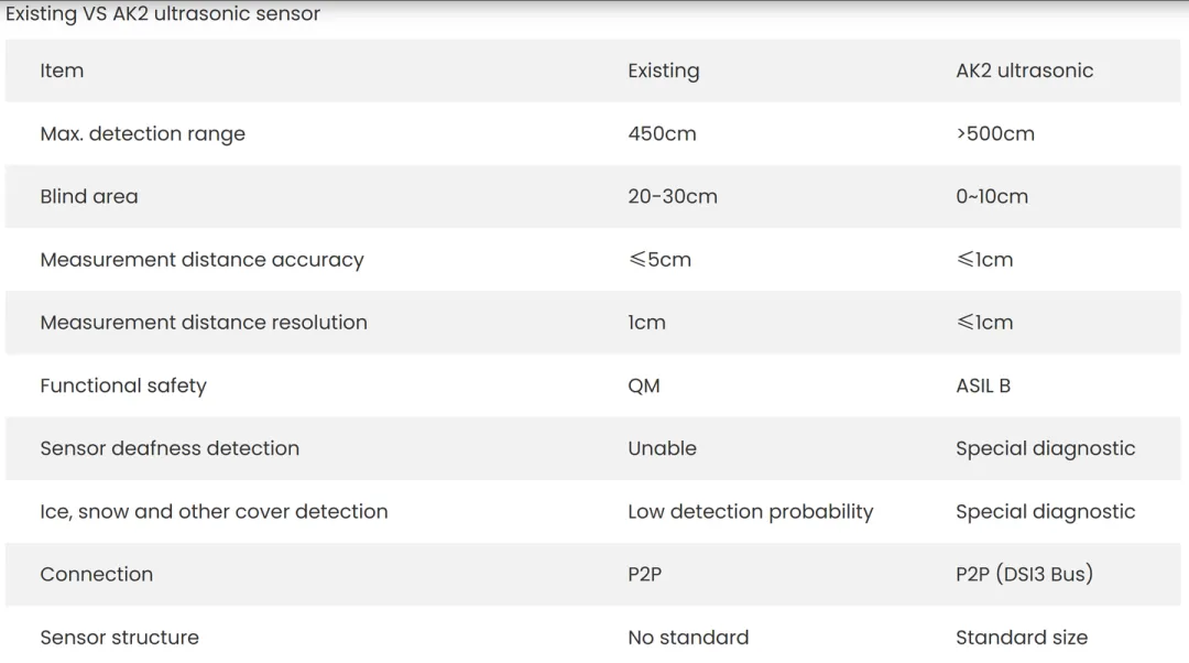 随着应用场景逐渐向APA、AVP拓展,超声波雷达需要更高的测量要求、更远的测量距离、更快的测量速度、更好的抗干扰能力、功能安全需求。而AK1的缺点也很明显,它采用同频工作模式,需轮次发波以避免干扰,导致系统刷新周期长。同时也不具备原始数据上传的能力,无法满足智驾系统的需要。AK2超声波雷达应运而生。