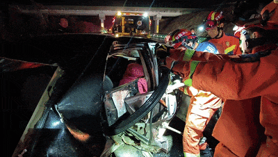 坐在副驾驶的女子被困车内