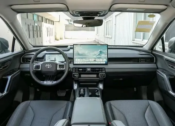 坐进车里,完全看不出来这是13万级的入门车型。高级皮质座椅,真皮方向盘、外后视镜折叠加热,50W无线快充、64色氛围灯全系标配,座舱质感直接拉满。搭载了14英寸高清中控屏以及8.8英寸液晶仪表,并且采用了丰田域控制器架构设计,在操作上非常流畅无卡顿并且保留了一些常用的实体按键使得驾驶盲区的操作更加安全可靠。