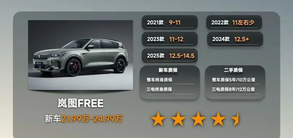 混动这块我态度也很明确:岚图FREE,混动里最推荐的车型。底盘、用料、整体完成度都在线。