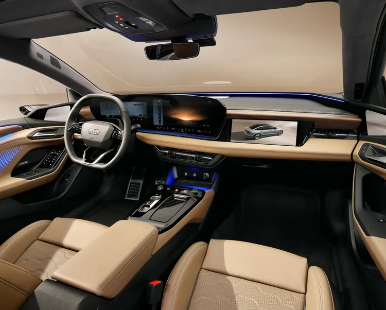 内饰仍然是奥迪最新家族化设计,配备弧形双联屏、副驾娱乐屏、第二代增强现实AR-HUD抬头显示、20个扬声器Bang & Olufsen品牌音响、全景天幕等,智能化上搭载华为乾崑智驾,可实现城区点对点自动导航辅助驾驶NOA。