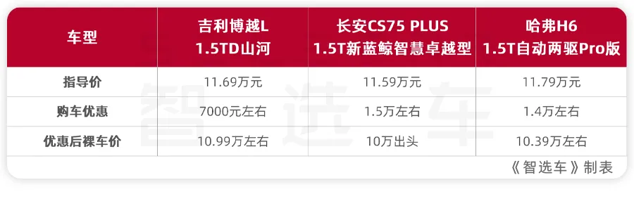 值得注意的是,哈弗H6因为上市时间稍长,优惠政策更稳定;吉利博越L和长安CS75 PLUS由于比较热销,优惠力度会稍微小一些,建议下单前多对比两家4S店,尤其是月底冲量时,议价空间会更大。