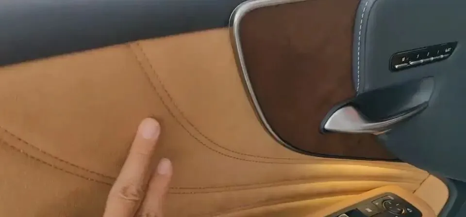 打开门那一下,我必须给个态度:氛围感很强。内饰是棕色皮革打底,最抓人的其实是门板:门板采用褶子布设计,具有个性。这种设计很“日式”,不是用大屏和灯带轰你,而是用材质和纹理慢慢把你包住。