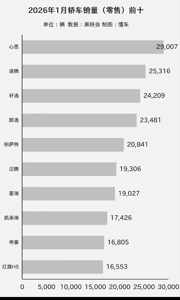以下是完整的“2026年1月轿车销量前十排行榜”: