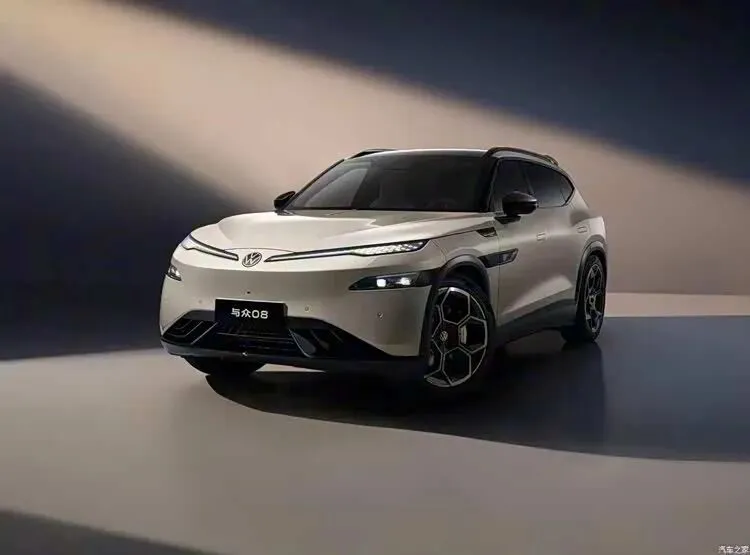 与众08预计在3月内正式上市,新车定位纯电动中大型SUV,外观设计上,前脸采用封闭式前格栅,搭配细长双大灯,大众品牌LOGO位于前脸中央,下侧配备梯形进气口以及略带铲型的前唇,看起来很激进。
