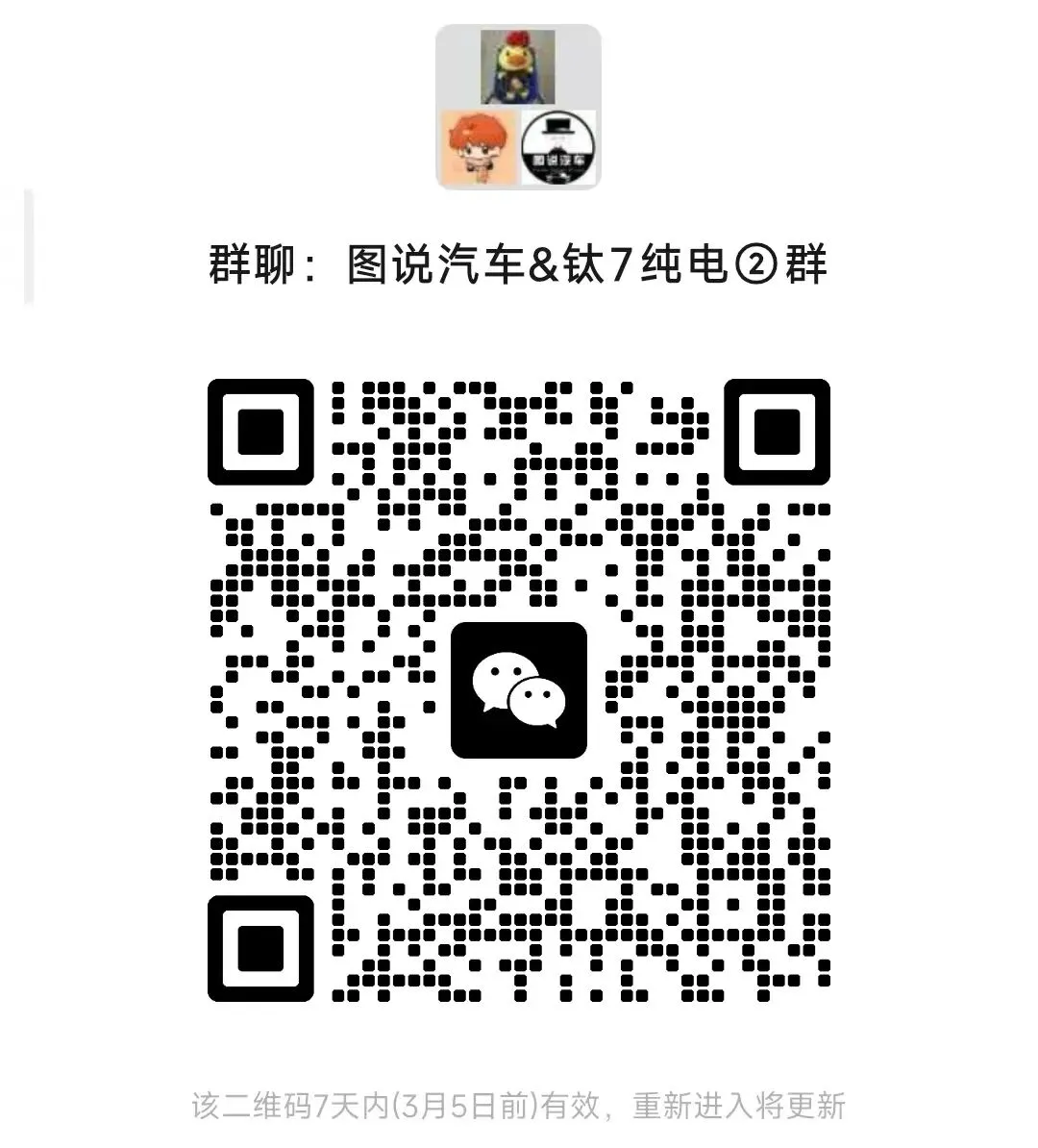 本文附带八款车型车友群,申请加入前,必要条件给图说汽车点个关注,审核放行,辛苦知悉。钛7纯电、大唐、小鹏GX等。不要重复添加。