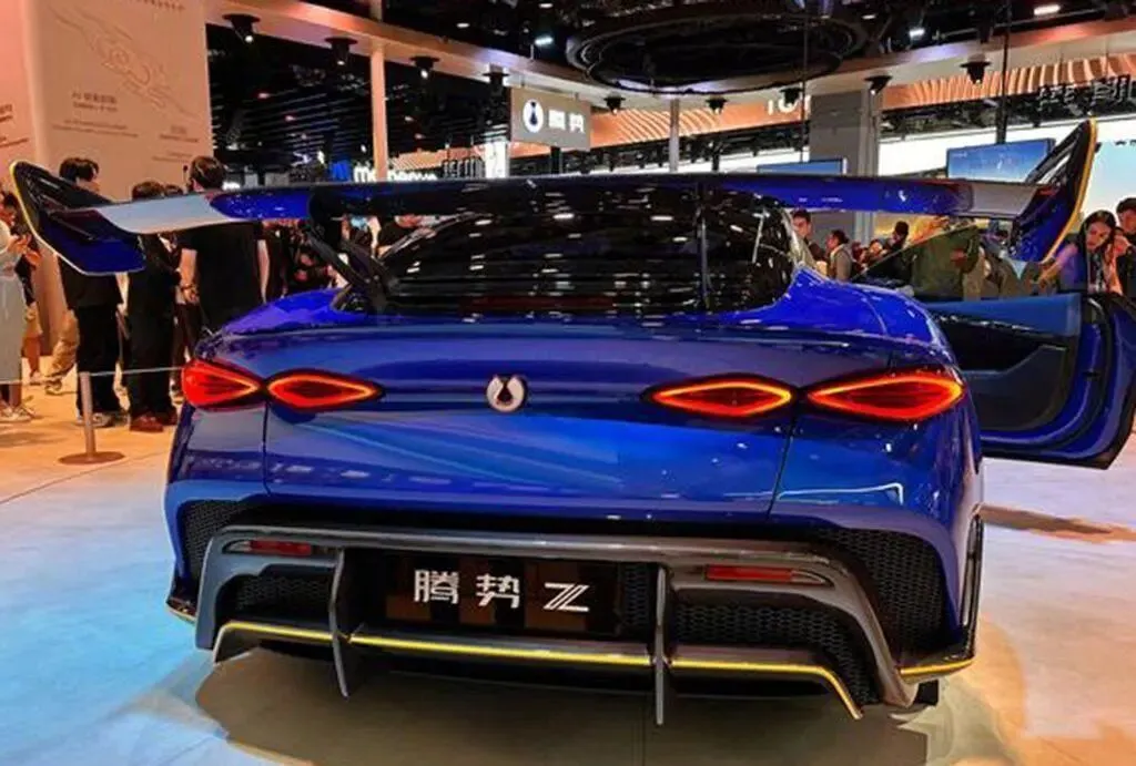 侧面溜背,收得干净,尾部翘个小鸭尾,够俏,尾灯形状有点像腾势那台Z跑车的感觉,也和方程豹的标志有点神似,后包围收紧,视觉很动,运动味够不够。