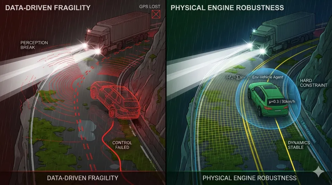 在物理本体论下,系统不再仅仅猜测路该怎么走,而是实时计算物理边界: