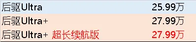 后驱Ultra比后驱MAX贵2万元!