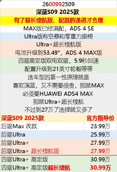 深蓝S09这车,配置区别极简单。