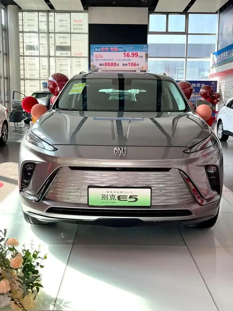 然.后第三款是 别克E5 ,这台车怎么说呢,就是典型的合.资.车那种感觉。车长4米89,轴距2米95,外观.看着特别.大.气。我上次去4S店看的时候,一坐.进去就感觉 底盘调.校.是真的扎实 ,跟我之前评测那些十几万的国产车完全不是一个感觉,高速上.开起来稳得很。后排腿部空间两拳半,座椅还有通风.按摩,长途.开车不累这个是真.的加分。后.备箱502升放.倒能到1654升,还.有个22升的前备箱,储物空间.是真的实用。但是吧这个车没有800V平台,快充30%到80%要40分.钟,说实话.这个充电速度在2025年确实有点跟不.上了, 明.明可以做得更好的 。