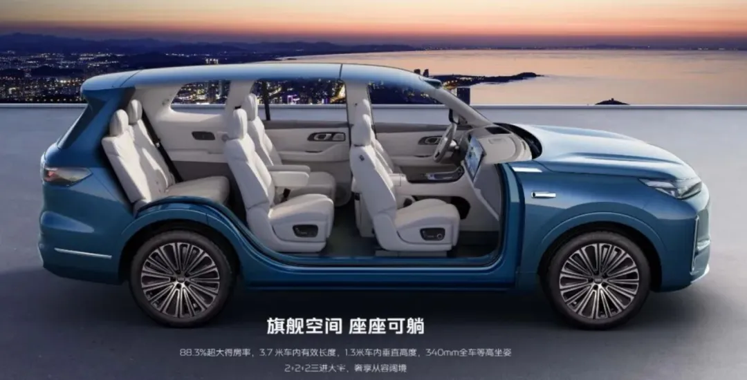 5205mm的车长配合3030mm轴距,全系标配2+2+2六座,第三排不再是应急凑合。1.5T+三挡DHT的动力组合,馈电油耗5.6-6.25L,四驱版零百4.5秒。