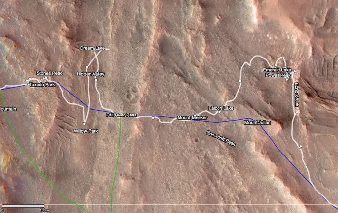 其次,火星表面遍布岩石、沙丘、陡坡等复杂地形,杰泽罗陨石坑(Jezero Crater)作为毅力号的着陆点,其岩石密度远高于此前好奇号(Curiosity)所在的盖尔陨石坑,累计岩石覆盖率最高可达20% 以上,对算法的地形适应性和障碍识别能力提出了更高要求。