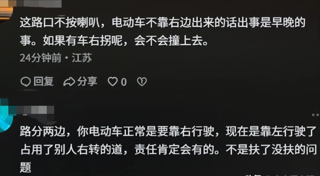 许多网友指出,轿车的压线行为才是导致骑车老妇重心不稳的根本原因。
