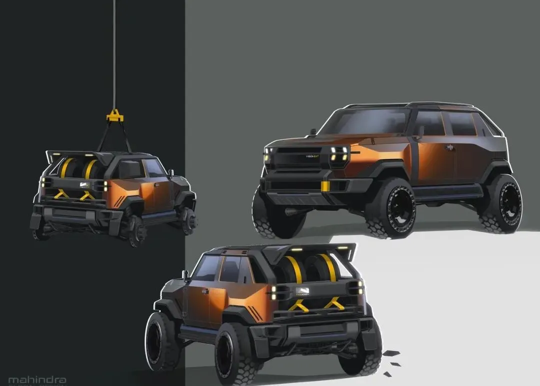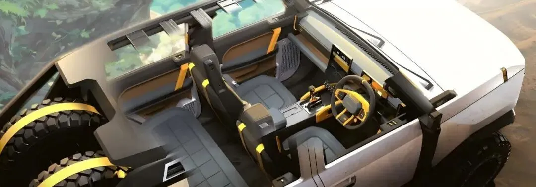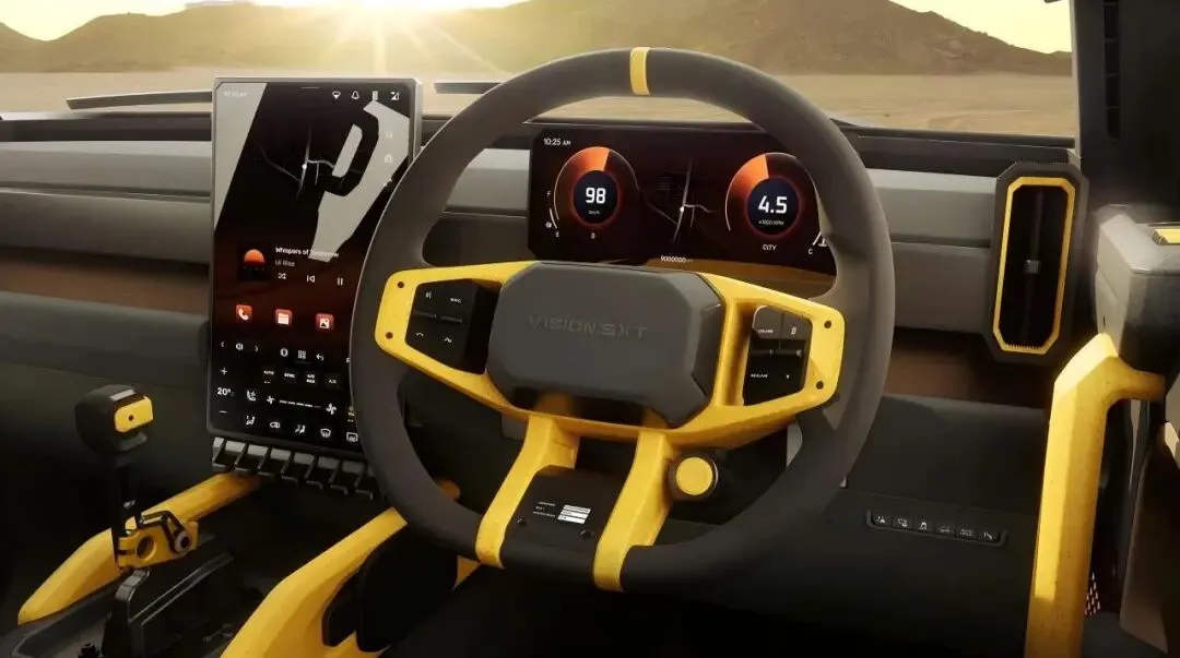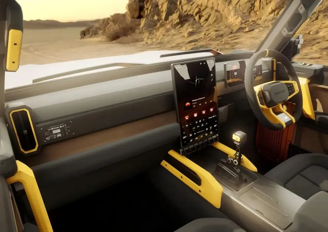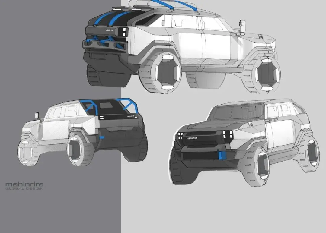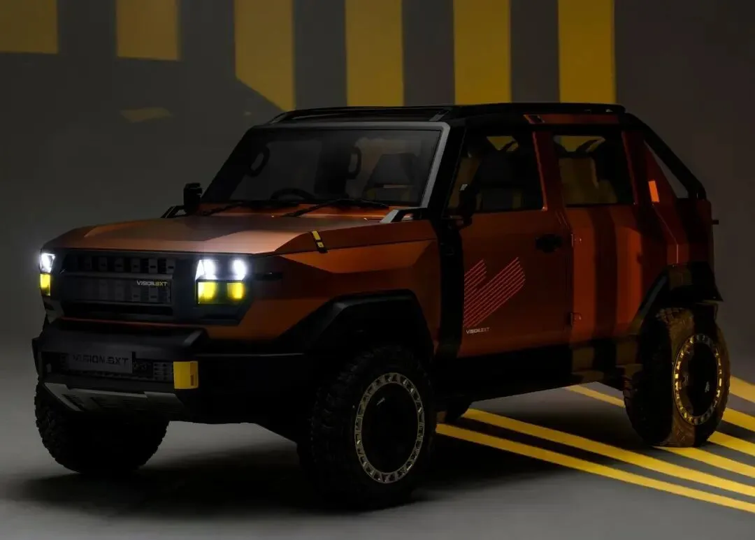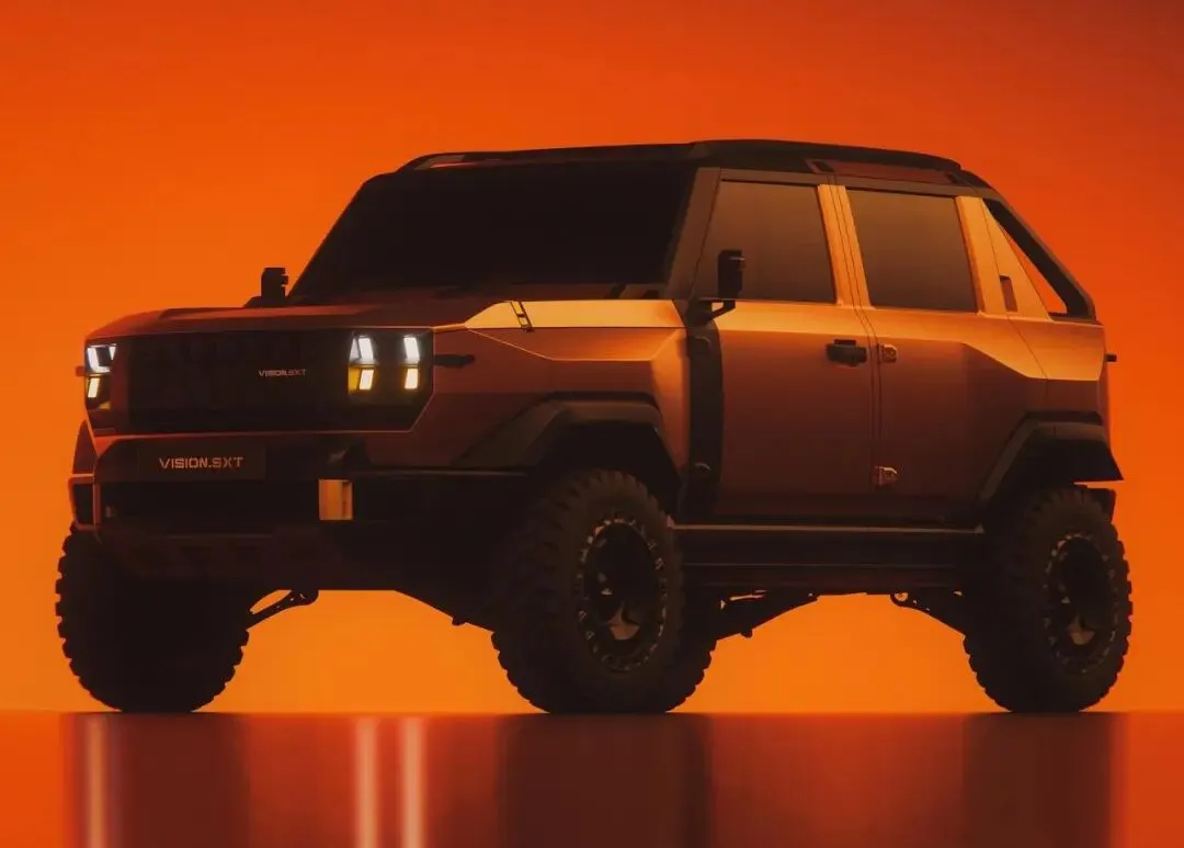 四台概念里,Vision.SXT的角色比较明确,它更像是工具属性和情绪表达之间的中间值:既要有越野与功能感,又要承担品牌向上的形象任务。马恒达在这里反复强调几个关键词——存在感、性能感、科幻感、坚固但精致。这其实对应的是当下全球SUV设计的一条主流路径:高体量轮廓 + 强对比型面 + 科技符号外露。