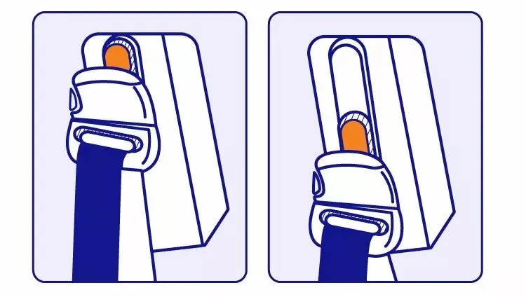 2.坐在车座上,一手拉出安全带,另一只手握住卡扣处,将卡扣片与卡扣处卡紧,以确保安全带牢牢拴住身体。