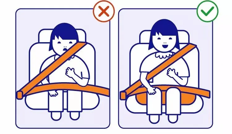 当孩子系安全带时,要注意使安全带跨过儿童的肩膀,斜对角贴胸而过;腰带应该跨过大腿根部而不是小孩的腹部,这样可以避免勒伤儿童的腹部;如果儿童身高不足,必须配合使用增高坐垫或者增高座椅抬高他们的身体。