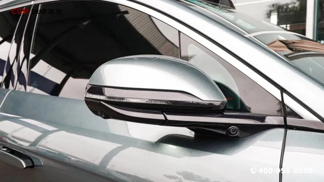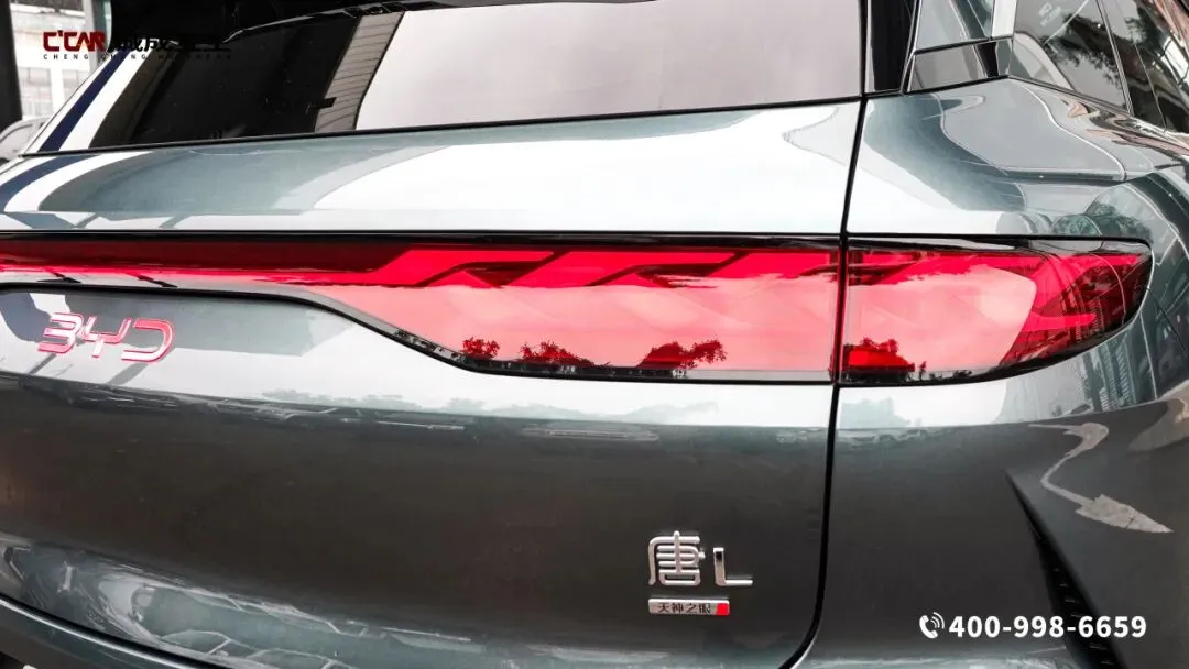 墨竹青车漆似雨后竹林透出的幽光,纳米级珠光涂层在光影流转间如竹叶凝露,近处观之是清雅温润的青韵,远处望去又透出沉稳大气的灰调,如古瓷般细腻温润。车头“龙吟”前脸搭配浮雕“唐”字车标,庄严中透出家族传承。分体式龙晶LED大灯凌厉有神,夜晚点亮时穿透力十足,照亮前路的每一处风景。侧身线条流畅修长,5040mm的车长搭配2950mm的轴距,勾勒出蓄势待发的运动姿态。隐藏式门把手如贝壳般自动开合,既降低风阻又提升科技感,悬浮式车顶则增添了几分灵动。21英寸低风阻轮毂造型动感,辐条如竹节般坚韧有力,搭配宽大的轮眉,尽显SUV的霸气。尾部的“竹之韵”贯穿式尾灯内部的光影如竹编纹理交织,点亮时如星河横贯车尾,与下方的扩散器和双边共两出排气布局相呼应,既有中式美学的雅致,又不失运动活力。车顶专属的无人机舱更是玩家版的标志性配置,与大疆合作的灵鸢无人机可动态起降,让户外出行多了一双俯瞰世界的眼睛。