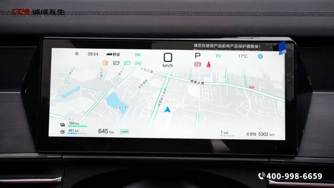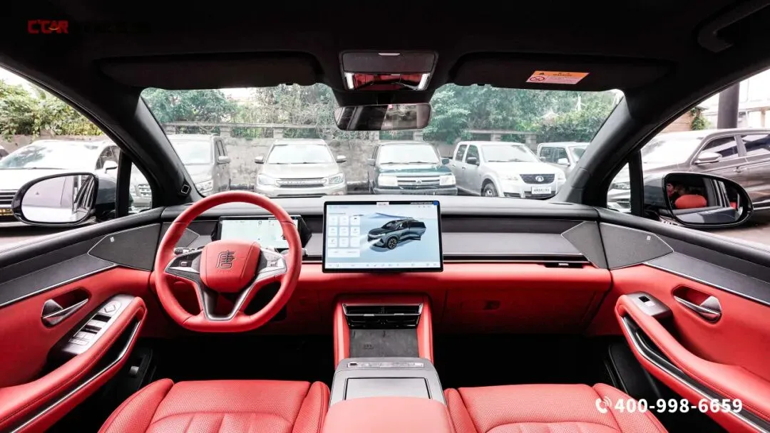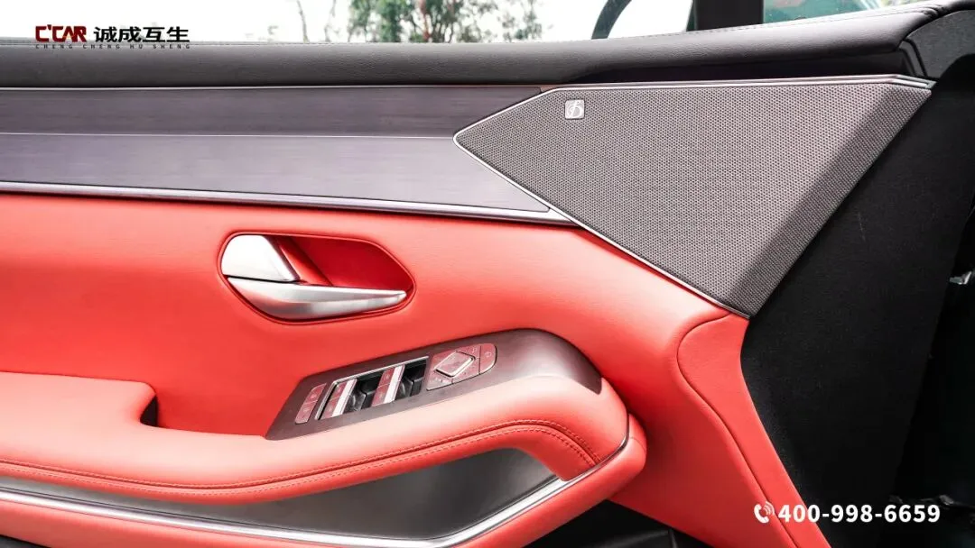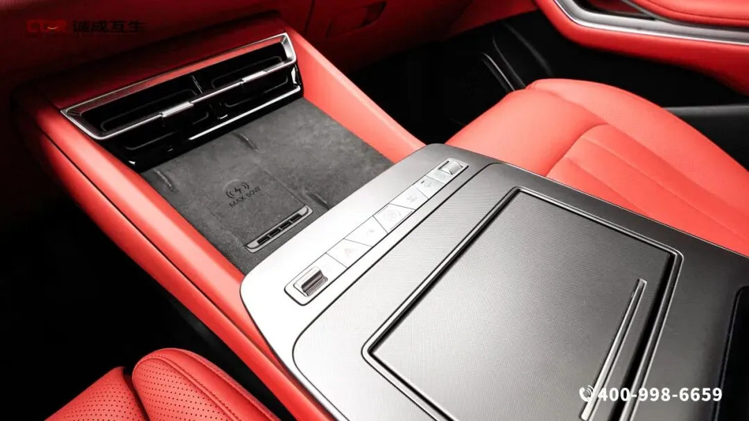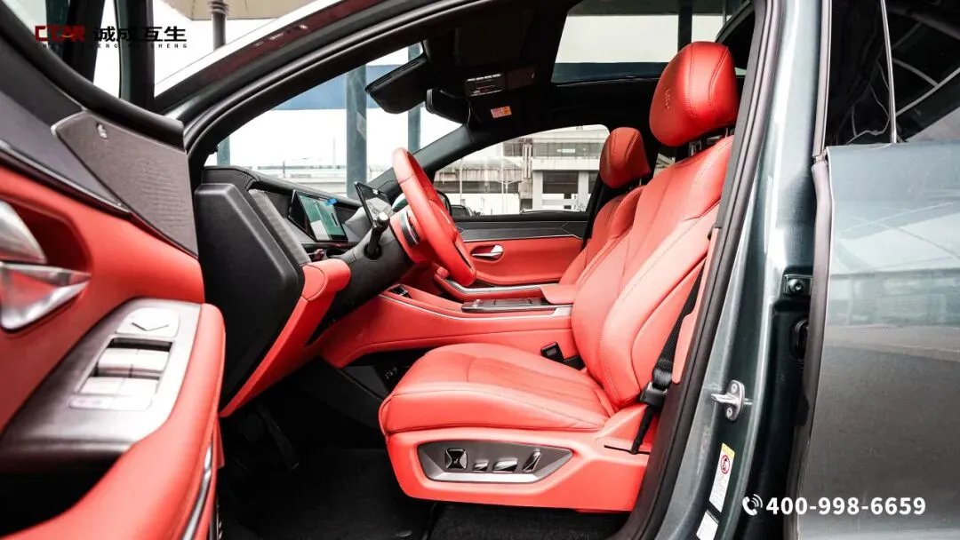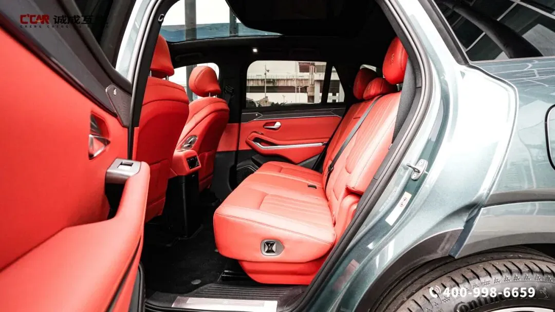 霞绯红内饰,竹木饰板点缀其间,座椅如云锦浸染朱砂,副驾面板镌刻“山水纹”拉丝金属,与多色氛围灯共绘《千里江山图》的现代剪影。中控台层次分明且富有韵律,15.6英寸旋转中控屏与全液晶仪表盘和HUD抬头显示形成三屏联动,行车信息一目了然,减少视线转移的安全隐患。三辐式多功能方向盘握感舒适,按键布局合理,操作起来得心应手,换挡时阻尼适中,如行云流水般顺畅。不可开启全景天窗尺寸宽大,如天幕般覆盖车顶,让车内通透明亮,夜晚可仰望星空,白天能沐浴暖阳。全车多处储物格设计贴心,中控台下方的专属无人机设备舱的,让户外装备收纳井然有序,细节处彰显实用性。