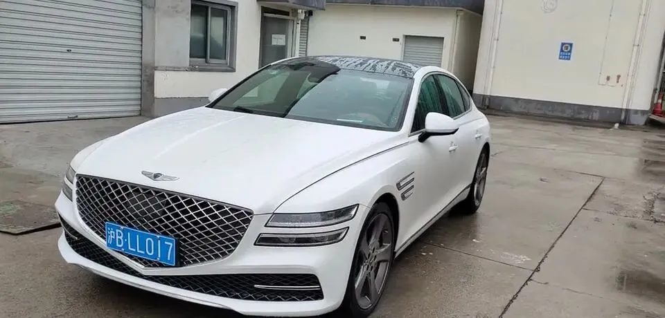 白色捷尼赛思G80汽车,车身线条流畅,设计优雅大气