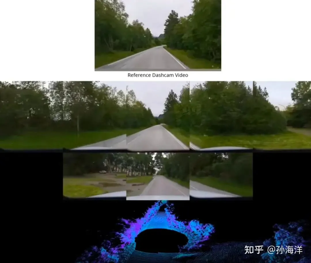 反事实驾驶仿真。 我们可以在历史真实行驶记录的原始路线下进行仿真,也可以在完全全新的路线条件下进行模拟。相比之下,纯重建式仿真方法(例如 3D Gaussian Splats / 3DGS)在模拟路线与原始行驶轨迹差异较大时,往往会因为缺失观测而出现明显的视觉崩溃;而完全基于学习的 Waymo World Model 则凭借其强大的生成能力,依然能够保持良好的真实感与一致性。