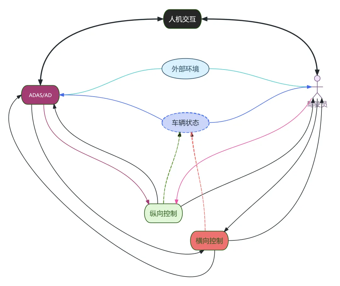 一,人类驾驶循环:驾驶员监控外部环境和车辆的状态,通过横向和纵向控制实现车辆整体的状态控制;