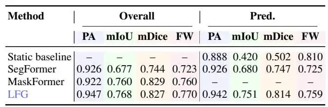 表1. 语义分割指标(总体 vs. 预测结果)。