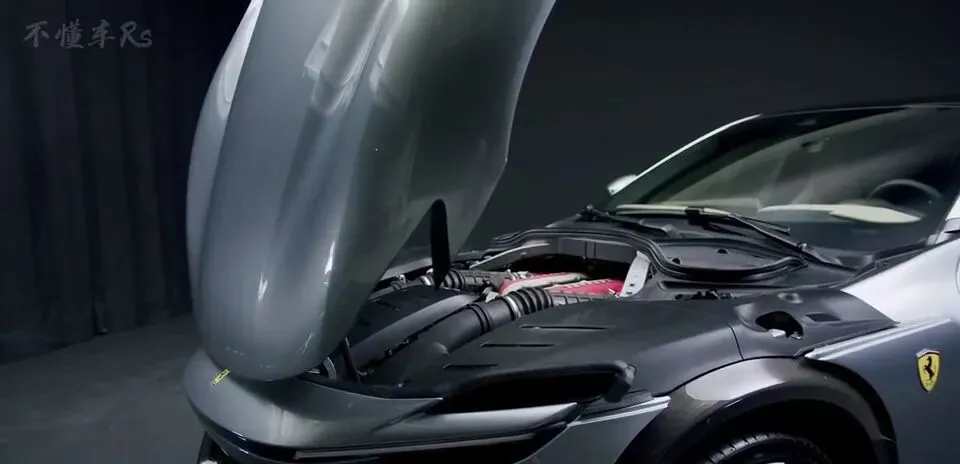 法拉利Purosangue引擎盖开启,展示发动机