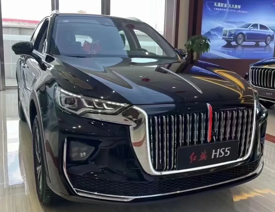 如果你想要大气点的外观,更越级的配置,可以看看红旗HS5。首先就是气场,直瀑式的大格栅,中间红色的旗标。2026款还主推一个全身黑化的玄影版,黑武士风格,配上红色卡钳,颜值是很高的。