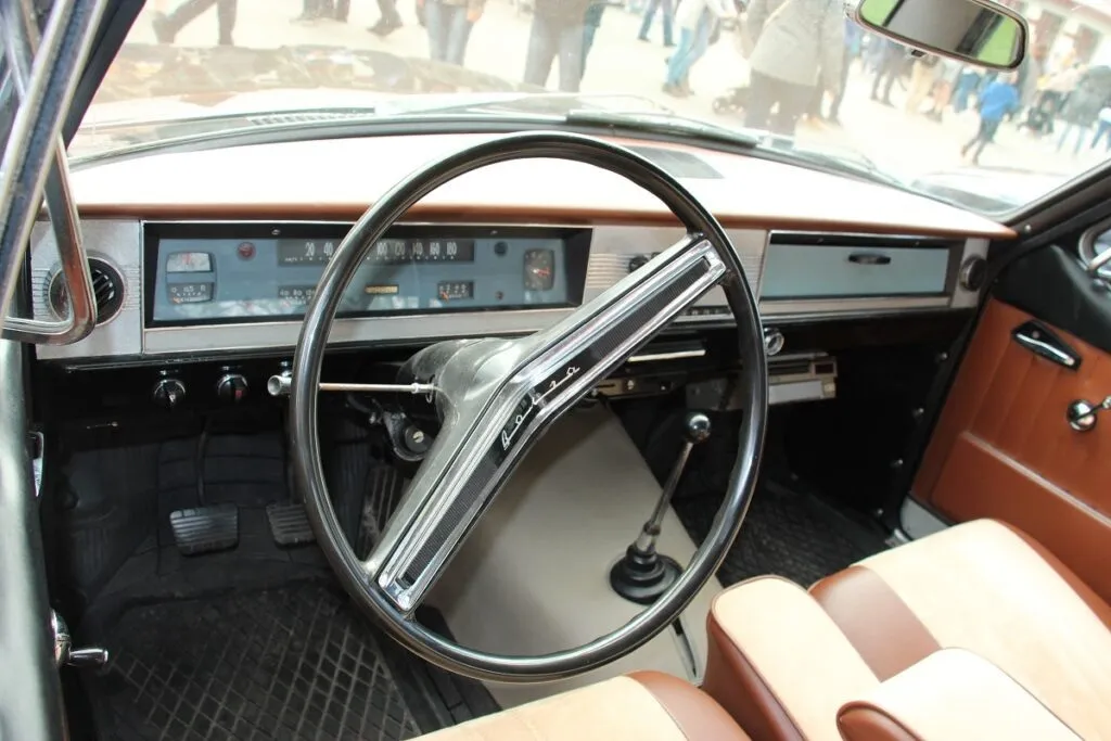 碍于苏联工业水平和国家经济的实际情况,大批量生产和美国全尺寸家庭车一样的官车他们根本承受不起。ГАЗ-24"伏尔加”轿车的车身长度是4735毫米,车身宽度是1800毫米,这个车身尺寸想在前排坐三个人就要想些旁门左道了。设计师把转向柱角度向左偏了几度,这样驾驶员开车时身体就是向左偏,理论上前排可以坐进三个人了。但是由于采用了地板挡设计,加上地板上还有个变速箱大鼓包,小批量生产的准量产车型测试证明前排中间根本不能坐一个人,只能更改设计。上世纪70年代初的批量投产的ГАЗ-24"伏尔加”是一辆5座位轿车,但是转向柱是歪的这一设计还是保留下来。