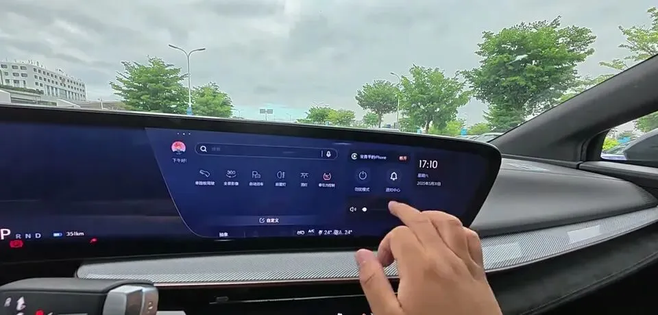 进到车里,那块30寸的6K显示屏还是挺震撼的,别克的VCS智能座舱嘛。不过说实话啊,这个车机系统我个人觉得还是有点半残疾状态,那个卡片式的进入方式真的不太好用,每次下车都要熄火断电,这点确实有点烦。