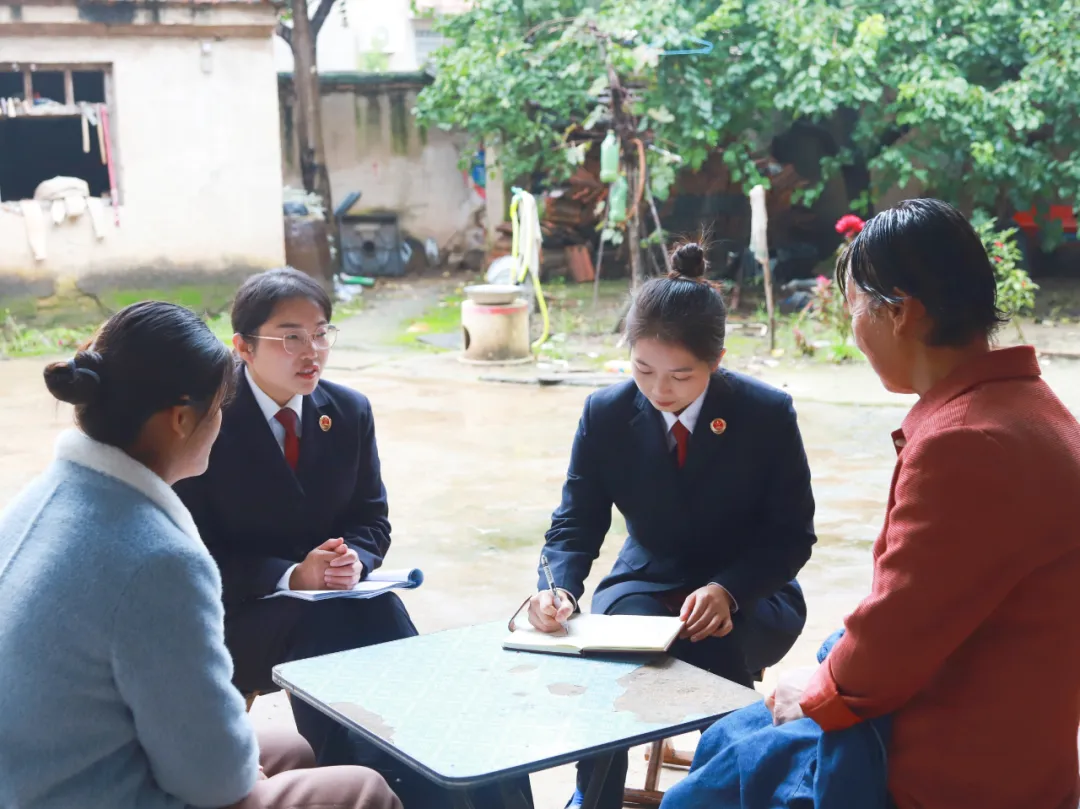 2025年10月31日,河南省尉氏县检察院检察官张园园(右二)和同事到李某家中走访,了解生活情况。
