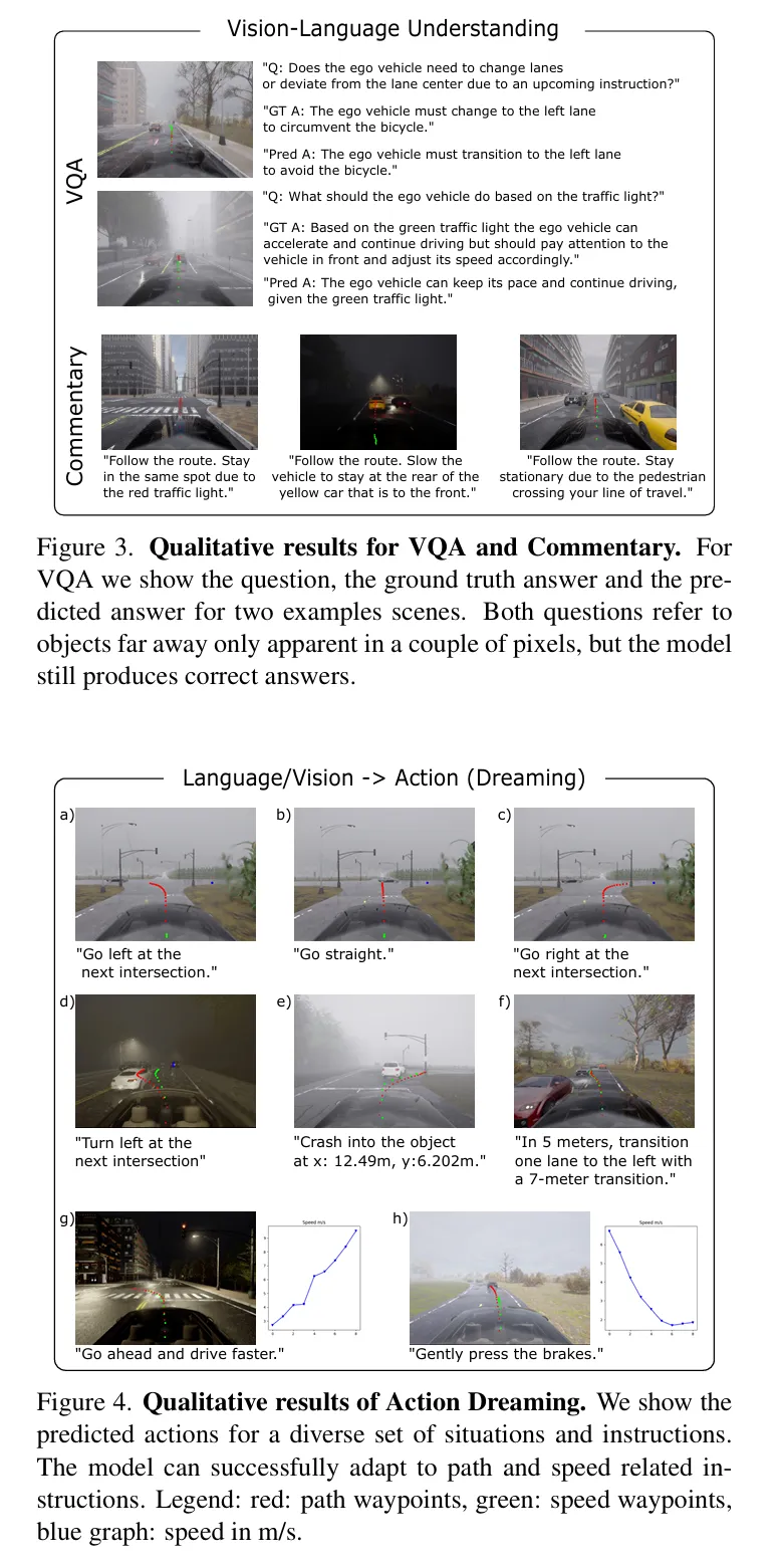 - 视觉问答(VQA):如“Is there an obstacle?”(判断场景障碍物)。