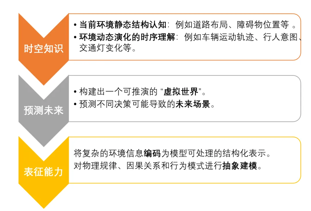 - 从 “统计拟合” 到 “物理理解”世界模型不仅学习数据中的统计规律,更要理解物体运动、碰撞、交互等底层物理规则,从而在长尾场景中做出更可靠的决策。