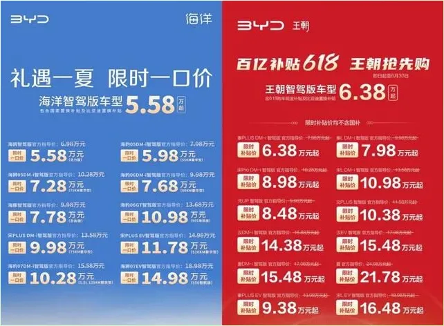 吉利银河周一下午就跟上了,星愿直接从7万拉到5.98万起,L6、星舰7、E5、星耀8这些也都降了,基本就是盯着比亚迪在打。零跑智己上汽通用长安这些也都宣布加入,三月之后刚消停两个月的市场,这又要开始新一轮肉搏了。