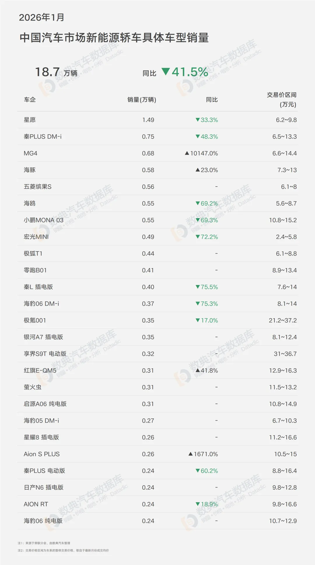 1月的轿车市场,不仅是销量的下滑,更是价格体系重构和细分市场格局重塑的关键节点。从具体车型销量看,传统"销量担当"纷纷失守,新的增长极正在孕育。