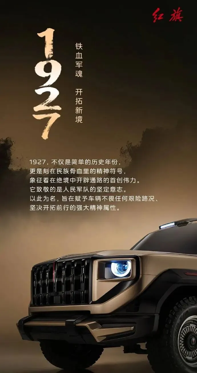 兄弟们,不知道你们是否还记得红旗品牌的那台全新硬派SUV?早在去年10月底的时候,红旗越野就通过向网友公开征名的活动正式确定了其“1927”的车型命名。只不过,厂家在后续的广州车展上并未官宣这台车的命名,至此也就给外界留下了一个悬念,那就是这台红旗越野到底还能不能够如期而至?