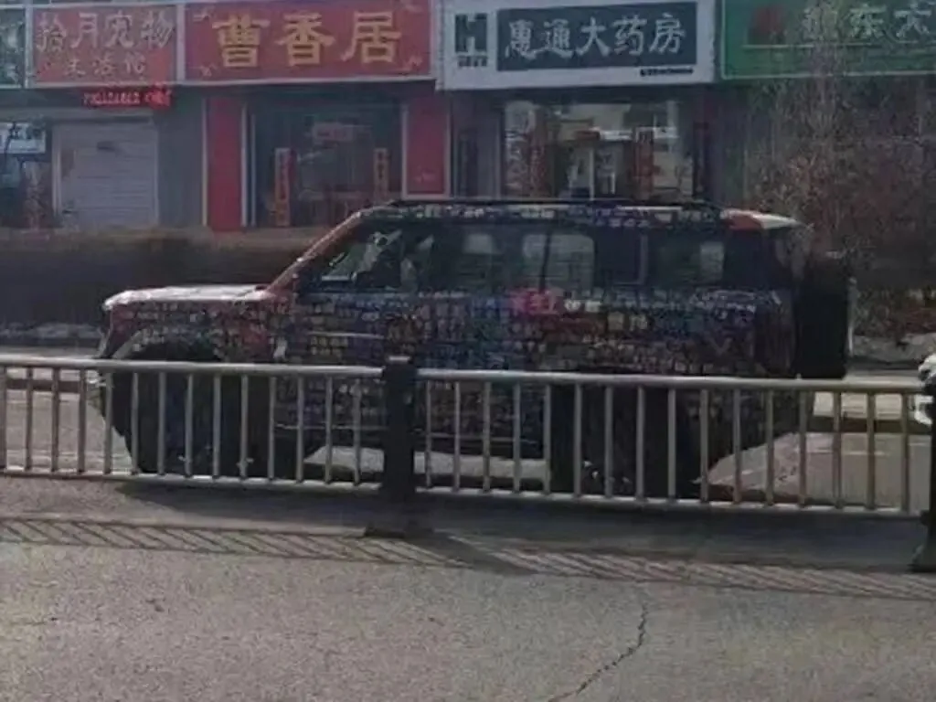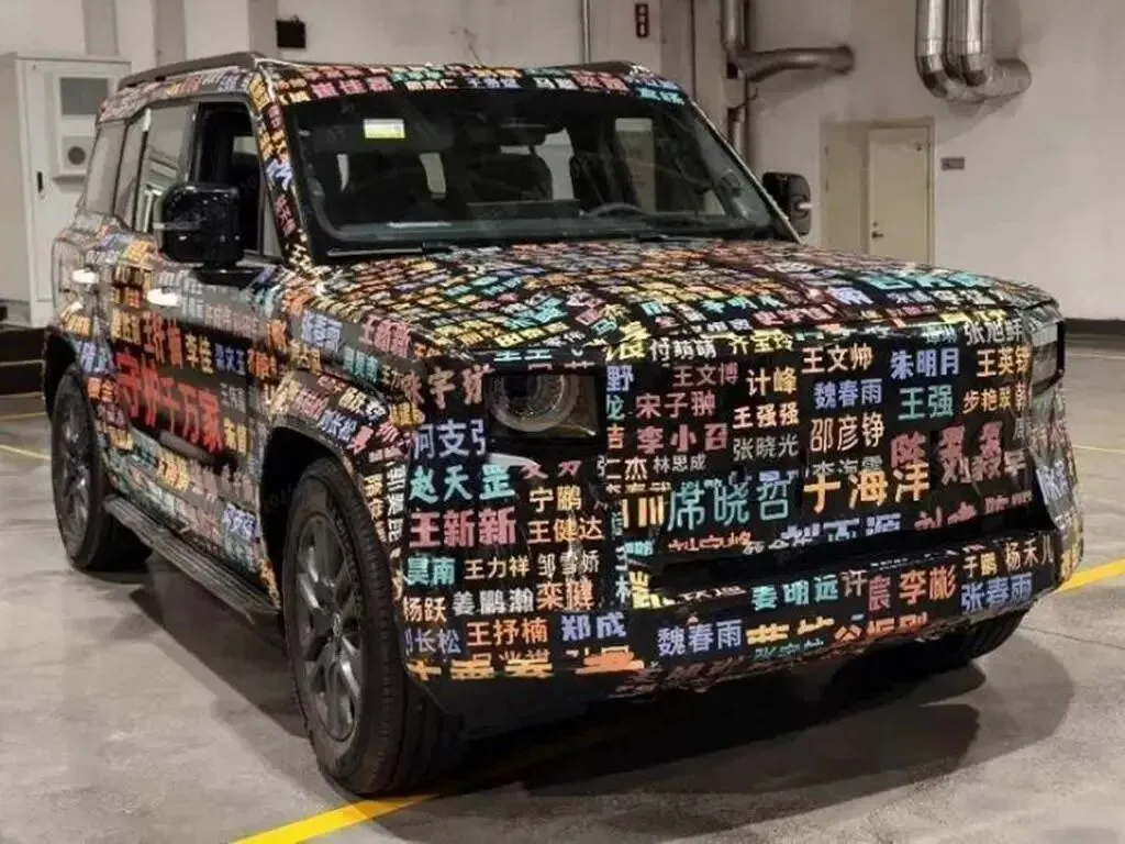 往上走,我们能看到车顶配有激光雷达和行李架,左右两侧的后视镜也是用的这种长方形设计,看起来和目前市面上在售方程豹豹5、坦克400等车型并无二样。