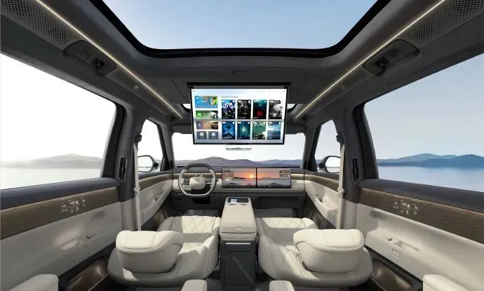 这台叫ID.ERA 9X的车,尺寸数据摆出来确实不错,5207×1997×1810mm的三维,3070mm的轴距,妥妥的大型六座SUV体格。