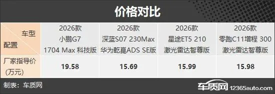 本次推荐的四款车均来自自主品牌,分别为小鹏G7增程、深蓝S07增程、星途ET5和零跑C11增程。售价方面,官方指导价均在20万元以下,深蓝S07增程价格最低;小鹏G7增程的价格最高,与另外三款车价格均值有一定差距。